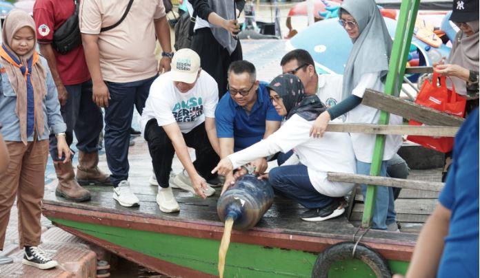 TRIBUNJAMBI.COM, Jambi - PT PLN Indonesia Power Unit Bisnis Pembangkitan Jambi lakukan pembersihan sampah dan upaya peningkatan kualitas air di kawasan Wisata Danau Sipin Kota Jambi.