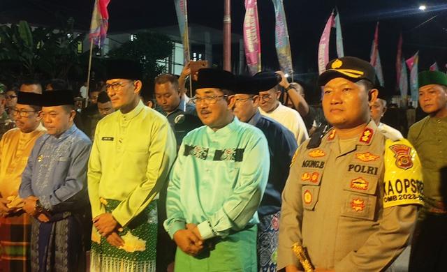 TRIBUNJAMBI.COM, JAMBI - Menteri Pariwisata dan Ekonomi Kreatif/Kepala Badan Pariwisata dan Ekonomi Kreatif (Menparekraf) Sandiaga Salahuddin Uno membuka secara langsung Festival Arakan Sahur di Kuala Tungkal, Kabupaten Tanjung Jabung Barat, Jambi, Minggu malam (17/3/2024).