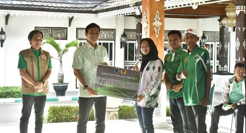 Bupati Batanghari Fadhil Arief Serahkan Bonus untuk Atlet Berprestasi pada Ajang Porprov Jambi