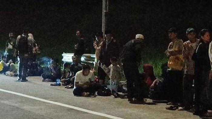 Ada puluhan penumpang terlihat terlantar di bahu jalan tol itu hingga sekitar dua jam.