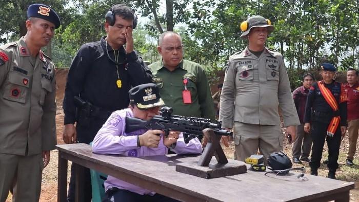 TRIBUNJAMBI.COM, BANGKO- Pj Bupati Merangin, Mukti bersama Ketua TP PKK Merangin Hj Indria Mayesti Mukti dan rombongan mengunjungi Markas Satuan Brimob Polda Jambi, Batalyon B Pelopor, untuk meninjau persiapan pengamanan Pilkada 2024 di Pamenang Merangin Jambi, hari Kamis (11/7/2024).
