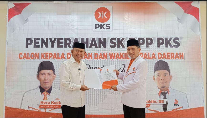 Hal ini usai DPP PKS menyerahkan Surat Keputusan (SK) rekomendasi melalui DPW kepada pasangan Syukur-Khafidh di kantor DPW PKS Provinsi Jambi, Senin (15/7/2024).