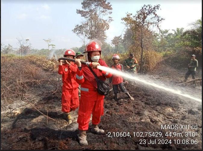 Sementara luas lahan yang terbakar diperkarakan 40 hektare, kondisi lahan semak belukar dan kebun sawit milik masyarakat yang tidak terurus lagi.
