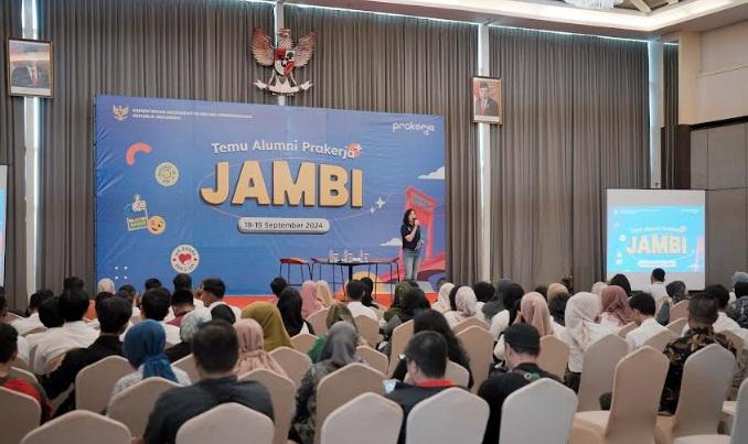 Saat ini, terdapat sekitar 100 alumni Prakerja dari 11 kabupaten/kota di Provinsi Jambi hadir dalam kegiatan temu alumni.