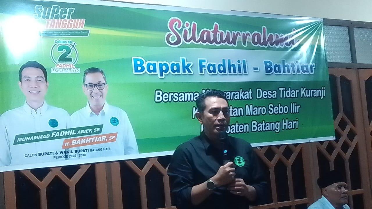 Koordinator pemenangan Fadhil-Bakhtiar di Desa Kehidupan Baru, Martulus, mengajak seluruh masyarakat untuk memenangkan pasangan Fadhil-Bakhtiar pada pemilihan umum Bupati dan Wakil Bupati Batanghari yang akan berlangsung pada November mendatang.
