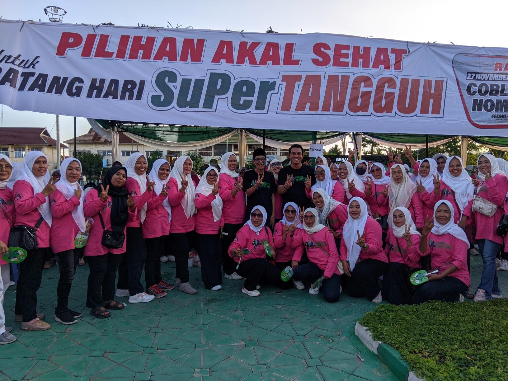 Setelah mengukuhkan relawan Super Tangguh, Fadhil-Bakhtiar diserbu emak-emak untuk berfoto bersama.