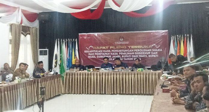 TRIBUNJAMBI.COM, SAROLANGUN-Rapat pleno terbuka hasil rekapitulasi penghitungan perolehan suara dan penetapan hasil pemilihan Bupati dan Wakil Bupati Sarolangun tahun 2024 tingkat Kabupaten telah usai dilaksanakan, Selasa (03/12/24) malam