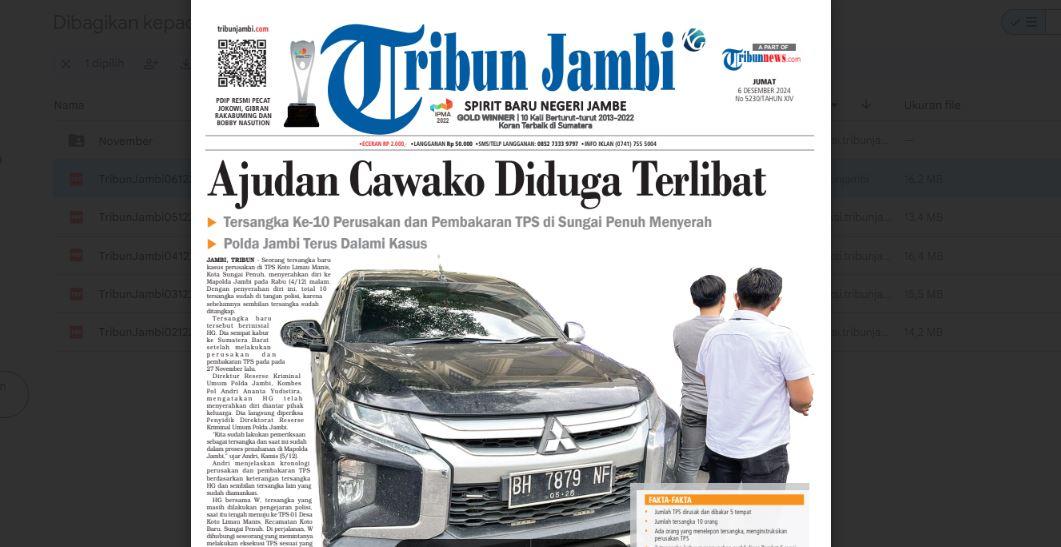 TRIBUNJAMBI.COM, JAMBI - Seorang tersangka baru kasus perusakan di TPS Koto Limau Manis, Kota Sungai Penuh, menyerahkan diri ke Mapolda Jambi pada Rabu (4/12/2024) malam.