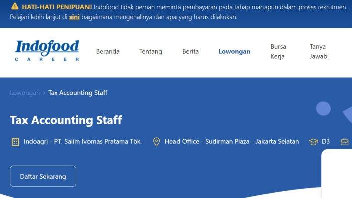 Berikut ini lowongan keja tax accounting staff di Indofood career,