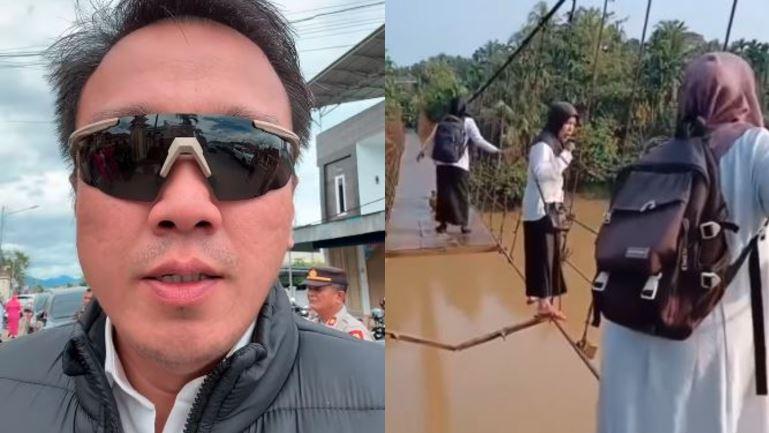 Dilansir dari akun Instagram Pak Bray, @manangsoebeti_official, Senin (12/5/2025) terlihat beberapa guru nekat melalui jembatan kecil yang nyaris putus.