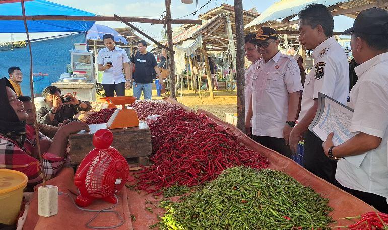 Wakil Bupati Muaro Jambi, Junaidi Mahir, saat memantau harga bahan pokok di Pasar Suko Awin Jaya Kecamatan Sekernan Kabupaten Muaro Jambi menyebut jika harga bahan pada tahun ini memang mengalami peningkatan harga, namun tidak begitu signifikan.