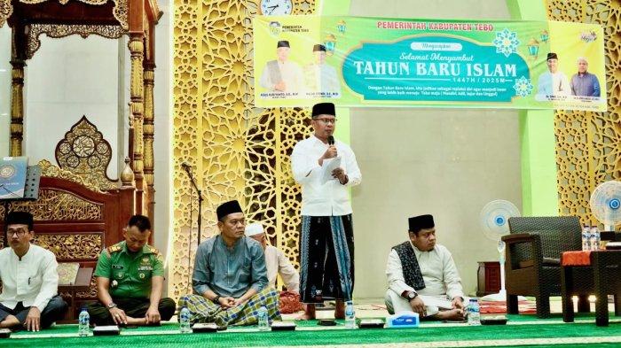 TRIBUNJAMBI.COM, MUARATEBO – Dalam rangka memperingati Tahun Baru Islam 1 Muharram 1447 Hijriah, Pemerintah Kabupaten Tebo menggelar kegiatan keagamaan yang berlangsung khidmat di Masjid Agung Al Ittihad, Kamis malam (26/6/2025).