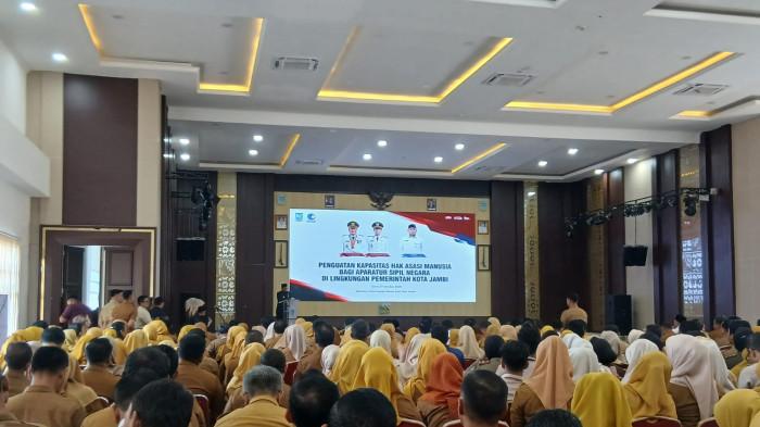 Ribuan ASN di Kota Jambi mengikuti pelatihan Penguatan Kapasitas Hak Asasi Manusia (HAM), Senin (27/10). Kegiatan ini berlangsung di Graha Siginjai