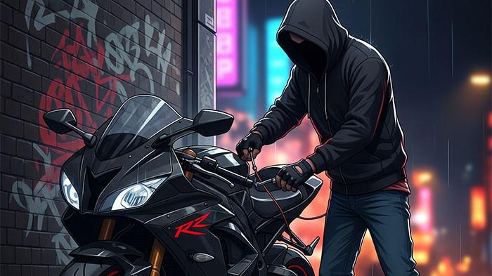 Mereka berpura-pura sedang mengantar pesanan, lalu mendekati sepeda motor yang diparkir tanpa pengamanan stang.