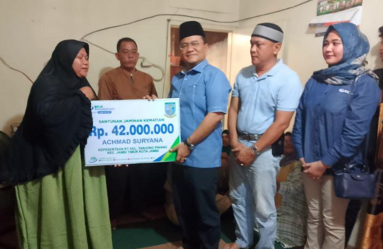 BPJS Ketenagakerjaan Cabang Jambi menyalurkan santunan kematian kepada ahli waris almarhum Ahmad Suryana, Ketua RT 29 Kelurahan Tanjung Pinang