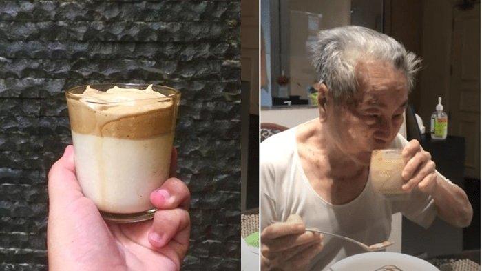 video menggemaskan yang menujukkan seorang pria paruh baya yang tak mau ketinggalan mencicipi kenikmatan kopi Dalgona.