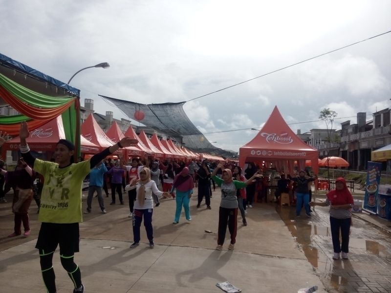 Senam bersama puncak Rangkaian kegiatan Jambi Food Festival yang digelar di Komplek Citra Raya City, minggu ,(12/10)