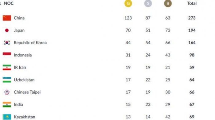 Update Klasemen & Perolehan medali Asian Games 2018 Kamis (23/8/2018) Usai Tambahan Perak