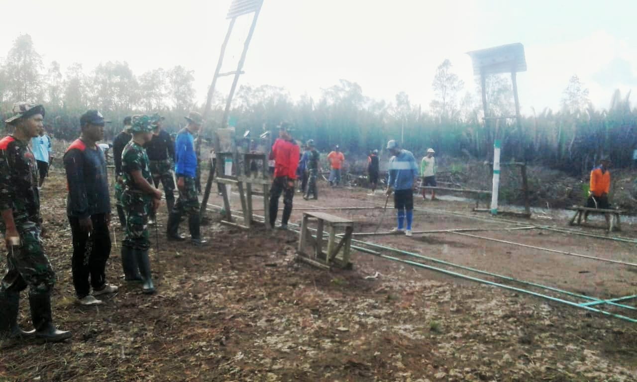 Satgas TMMD Kodim 0419/Tanjab hampir menyelesaikan pekerjaan pembuatan sumur bor di di Dusun V Sei Ayam Desa Pangkal Duri