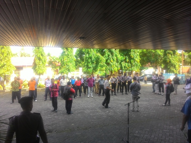 Sejak tadi malam, belasan anggota kepolisian terus berjaga jaga di kantor Dinas Pendidikan Provinsi Jambi.